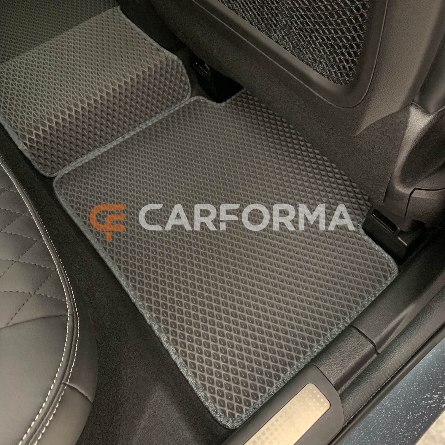 Автоковрики ЕВА не впитывают, а удерживают грязь в ячейках. Вода не катается по полу, как в резиновых половичках, однако, её все равно видно. ЕВА удобны тем, что их легко достать не пролив и вытряхнуть. Они дешевле.