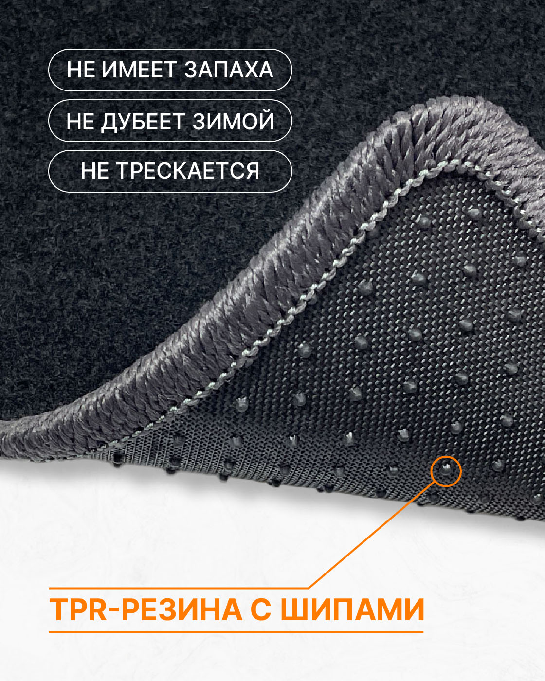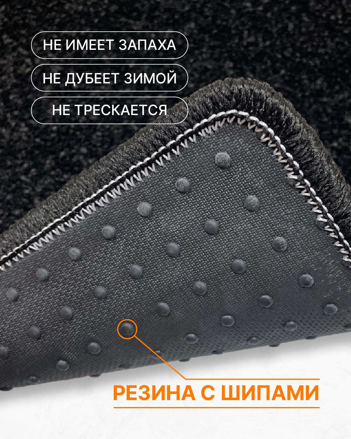- Имеют антискользящую поверхность, что гарантирует безопасность движения и устойчивость ковриков на полу автомобиля.