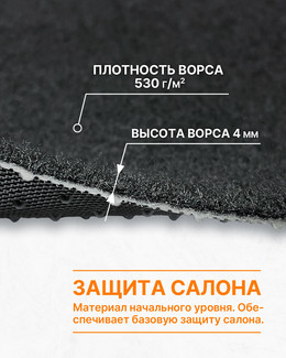 - Изготовлены из качественного ворса, который обеспечивает превосходную теплоизоляцию и звукоизоляцию салона вашего автомобиля.